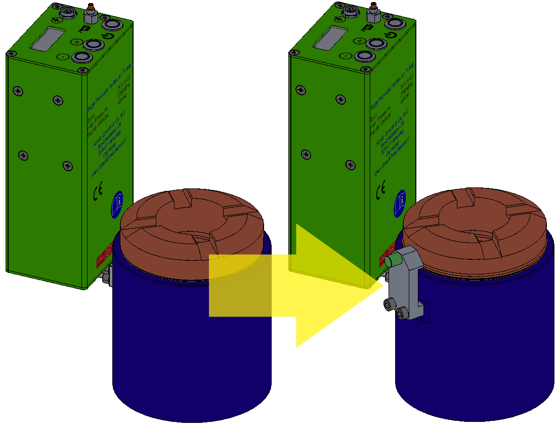 ![]() Strongly recommended feature: If the piston should be moved beyond it's stroke, it might be pressed out of the cylinder. With smartTensioner, this is not dangerous because the amaount of compressed oil is so low. However, pressing the piston back will destroy the sealings. The PistinStrokeLimitation automatically stops the pump when the pistion has reached it's max. position.