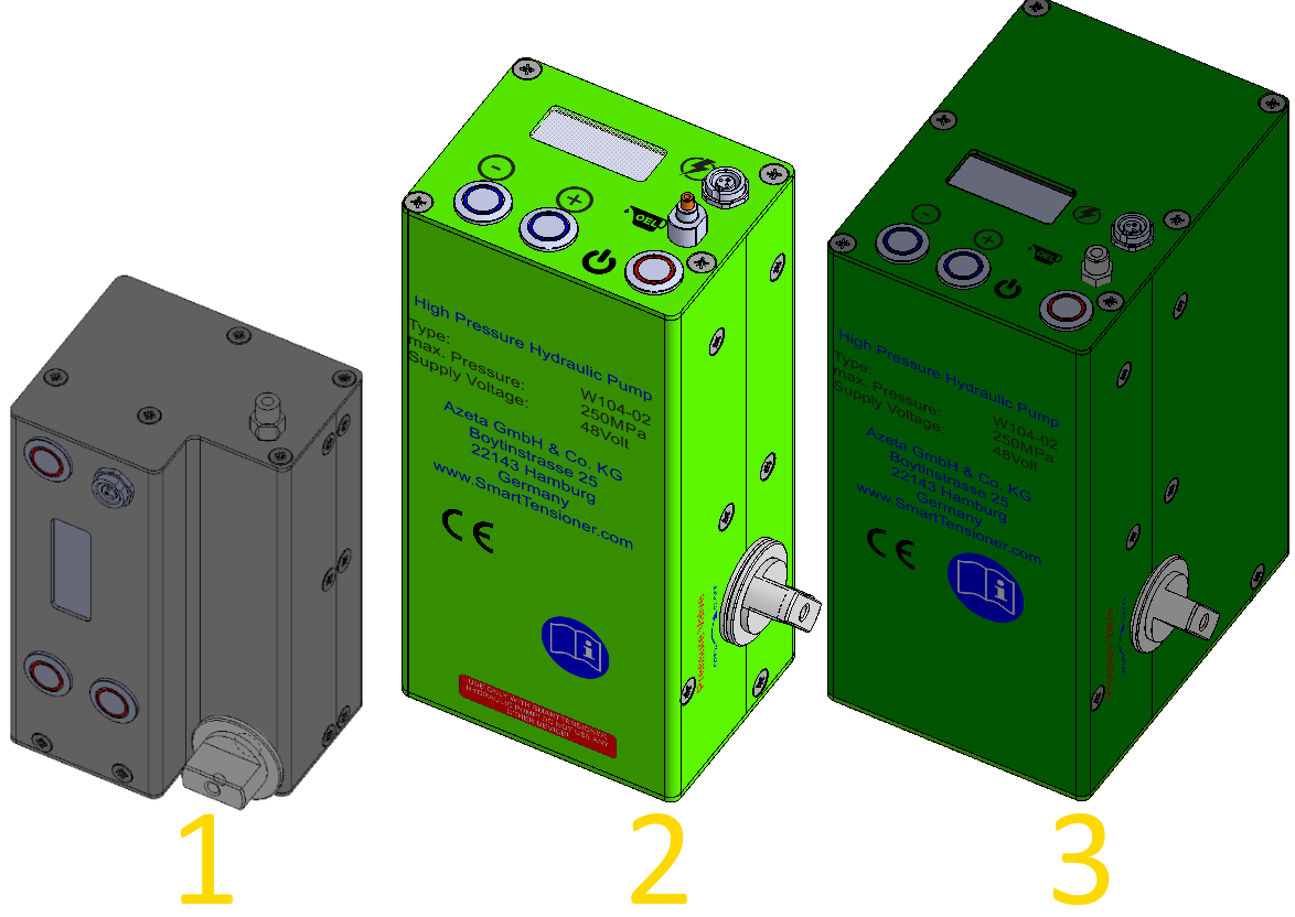 Our Pumps can be operated by a small panel on the top of the pump. However, using several pumps at once is easier using our smartTensioner pumpControl-Software: Available on an simple Android tablet PC, it allows controlling all pumps at once and synchromnizes the pumps agaoinst each other to ensure even force distribution.